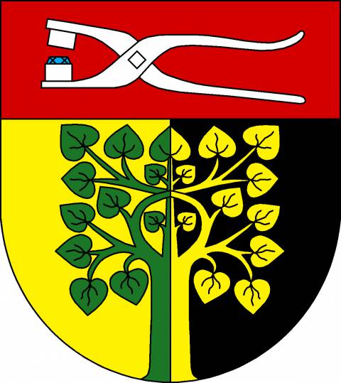 Znak: „Ve zlato-černě polceném štítě s červenou hlavou, vyrůstající zeleno-zlatě polcená lípa. V hlavě štítu položené stříbrné rozevřené mačkářské kleště s modrým kamenem, v dolním kaplíku“.