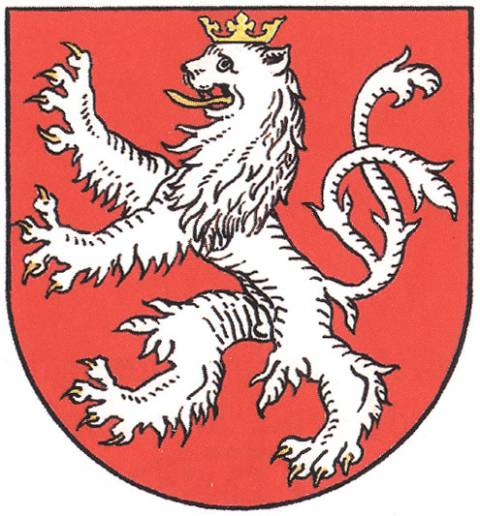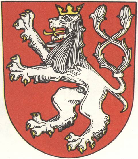 „Znak: V červeném štítě český lev nad zvýšenou zelenou patou, v ní kosmý mlátek šikmo přeložený želízkem, obojí stříbrné.“