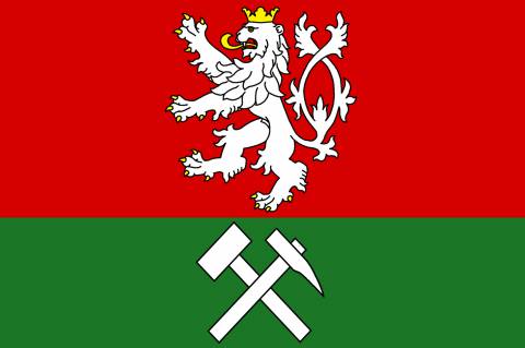 „Vlajka: List tvoří dva vodorovné pruhy, červený a zelený, v poměru 5 : 3. V horním pruhu český lev, v dolním kosmo mlátek šikmo přeložený želízkem, obojí bílé.“