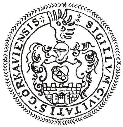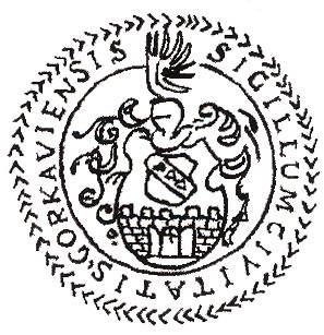 Jirkov, větší městská pečeť - č. 1; užita v roce 1655 (kresba Karel Liška).