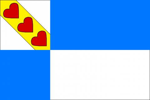Vlajka města Jirkova, udělena v roce 2016 (návrh a kresba Stanislav Kasík).
